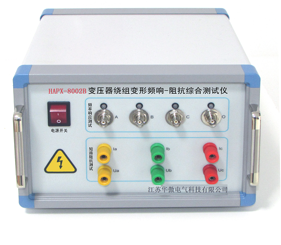 HAPX-800B2變壓器繞組變形綜合測試儀 (頻響法+阻抗法二合一)用于測試6kV及以上電壓等級電力變壓器及其它特殊用途的變壓器,電力變壓器在運行或者運輸過程中不可避免地要遭受各種故障短路電流的沖擊或者物理撞擊,在短路電流產生的強大電動力作用下,變壓器繞組可能失去穩(wěn)定性,導致局部扭曲、鼓包或移位等永久變形現象,這將嚴重影響變壓器的安全運行。按國家電力行業(yè)標準DL/T911-2004采用頻率響應分析法測量變壓器的繞組變形,是通過檢測變壓器各個繞組的幅頻響應特性,并對檢測結果進行縱向或橫向比較,根據幅頻響應特性的變化程度,判斷變壓器繞組可能發(fā)生的變形情況。