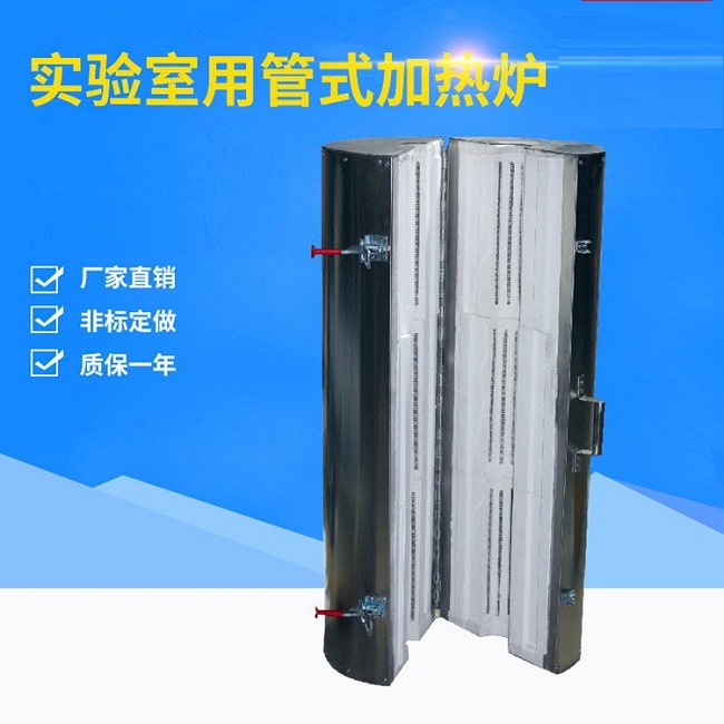 不銹鋼碳化硅加熱爐是由不銹鋼薄板(表面法紋)壓制成兩個半圓,兩端裝配鑄鐵鍍鉻端蓋組成兩個半圓桶,再將兩個半圓桶爐體的一邊用不銹鋼絞鏈連接,另一邊采用進口不銹鋼搭扣安裝組合成爐體,爐體外開合處并配有不銹鋼把手,方便用戶將兩個半園爐自由打開或關(guān)閉,爐中安裝串入合金電阻絲并填實耐高溫導熱絕緣的材料的碳化硅爐瓦,及陶瓷纖維保溫材料,外殼裝有與電源接線的接線盒(兩半圓爐之間有并聯(lián)和串聯(lián)兩種接線方式)和爐體安裝固定三角架。