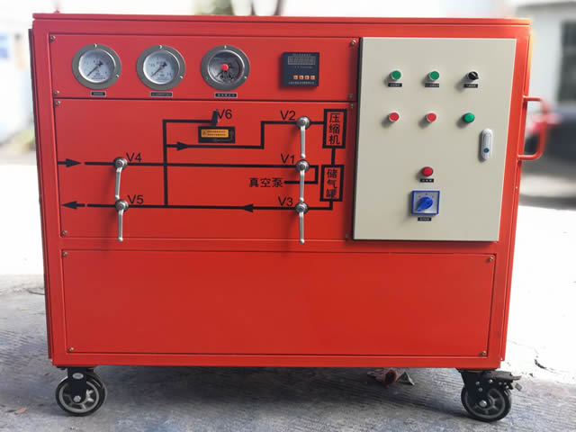 SF6氣體作為一種絕緣氣體,具有無(wú)毒、不可燃,以及良好的絕緣特性,其絕緣強(qiáng)度gao于傳統(tǒng)的絕緣氣體,并具有良好的滅弧性,因此廣泛應(yīng)用于SF6電器。由于SF6氣體價(jià)格昂貴,且在電弧、電火花和電暈放電的作用下,會(huì)分解產(chǎn)生有毒成份。因此SF6電器設(shè)備應(yīng)用時(shí)需要將SF6氣體回收。本裝置就是為了制造和維修SF6電器設(shè)備時(shí),回收和充加SF6氣體的一種專用設(shè)備。